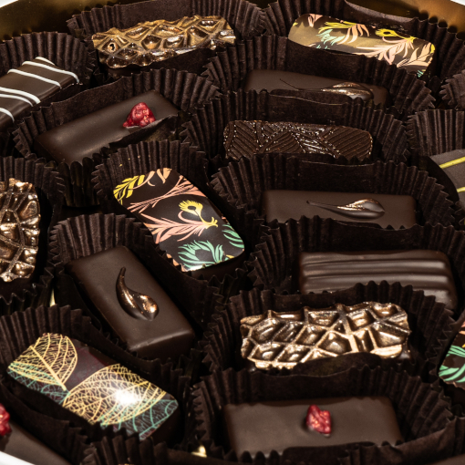 Kézműves bonbonjainkhoz valódi csokoládét, gyümölcsöket és dióféléket használunk fel. Csokoládéink termőhely szelektáltak, magas kakaótartalommal és 100%-os kakaóvajjal.