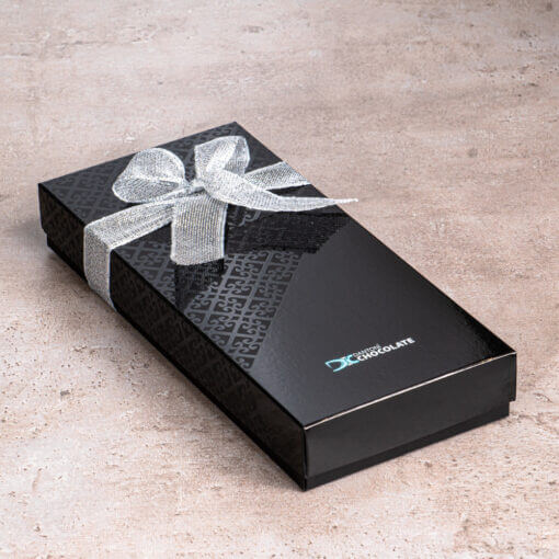 20 db kézműves bonbon vegyesen fekete, lakkozott dobozban ezüst masnival díszítve.