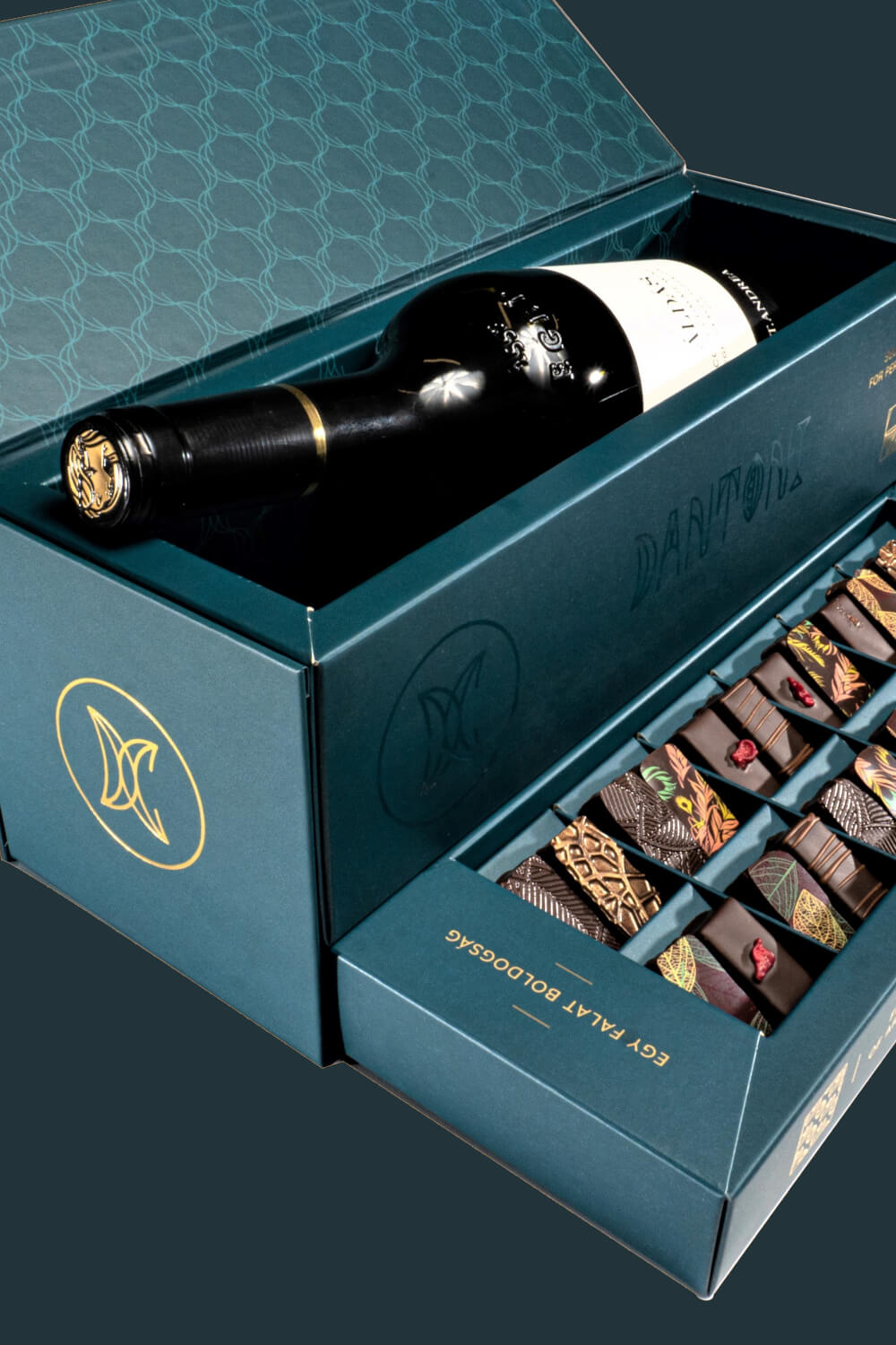 A prémium dobozokban a bor mellett bonbonjaink is elférnek egy-egy titkos rekeszben.