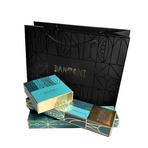 Elegáns fekete, arany vagy csodaszép türkiz artdeco mintával díszített dobozban.