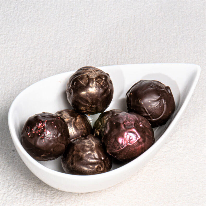 A 2024 Gyulai Pálinkafesztivál nagydíjas bonbonja az aranyérmes Birslika. 5 db étcsokoládé burokba rejtett kétrétegű bonbon. A selymes zselé és a gyümölcsös, fűszeres ganache jól kiegészítik egymást. Az arany doboz selyemszatén szalaggal van átkötve.