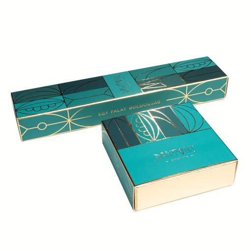 20 db kézműves bonbon arannyal prégelt, színes artdeco dobozban.