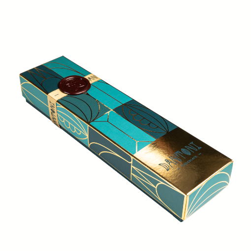 10 db kézműves bonbon artdeco dobozban, viaszpecséttel lezárva.